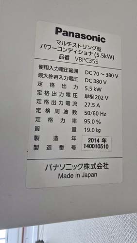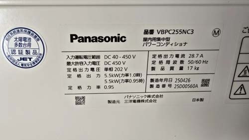 坂出市京町 パナソニック パワコンディショナ屋内用集中型VBPC255NC3 パワコン交換工事|香川で壊れたパワコン交換修理は最短即日対応|香川パワコン交換ショップ